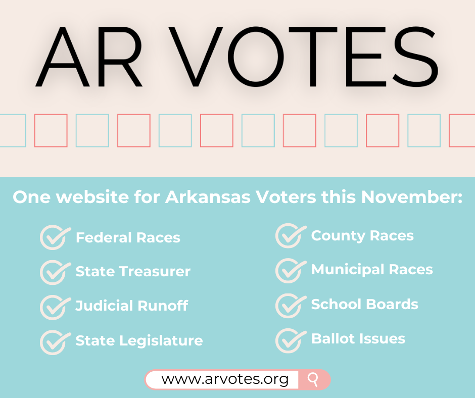 And to help you find more information on the people and issues on your ballot, check out the recently updated Arkansas Votes website: www.arvotes.org.
