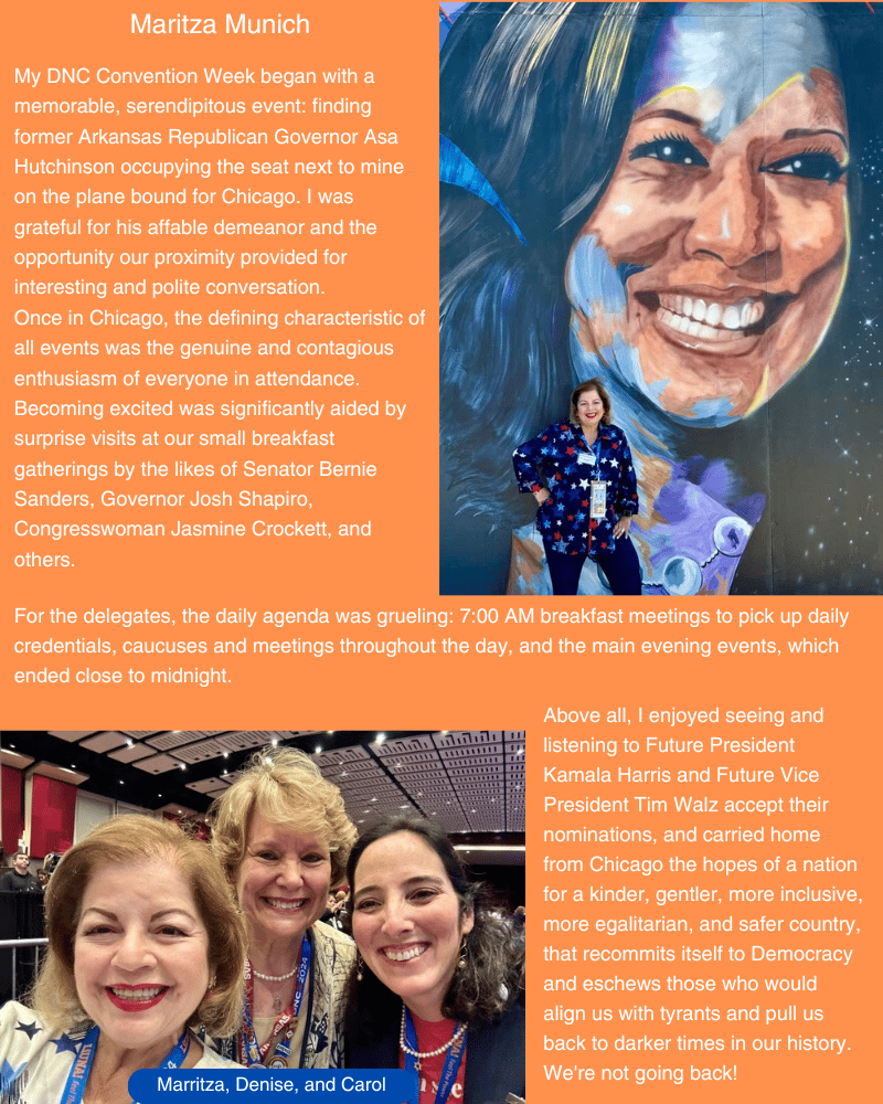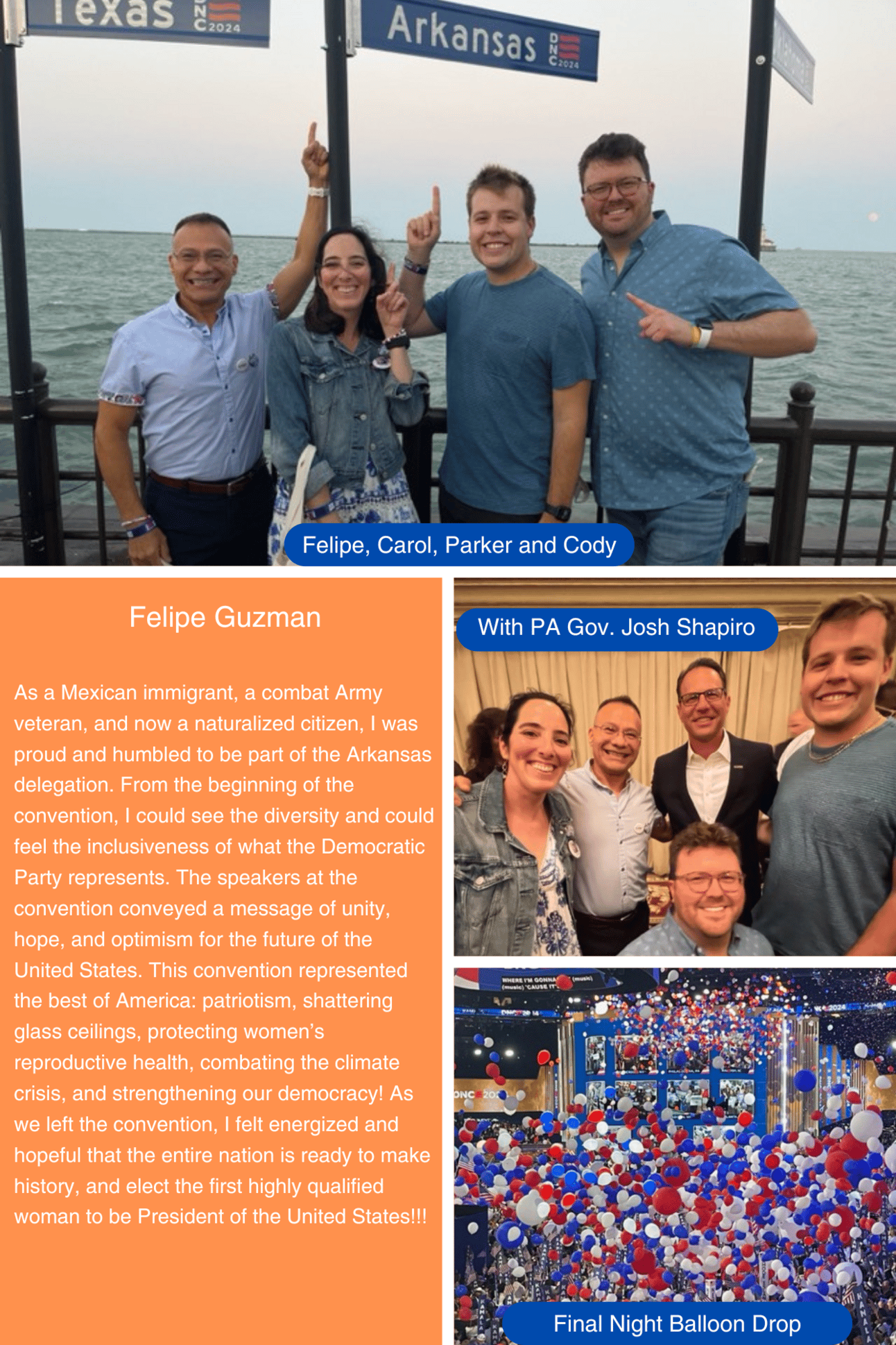 Happy Labor Day! In addition to the content you usually expect, today’s email contains pictures and thoughts from the five local Benton County Democrats who were able to attend last month’s Democratic National Convention in Chicago as representatives of Arkansas.